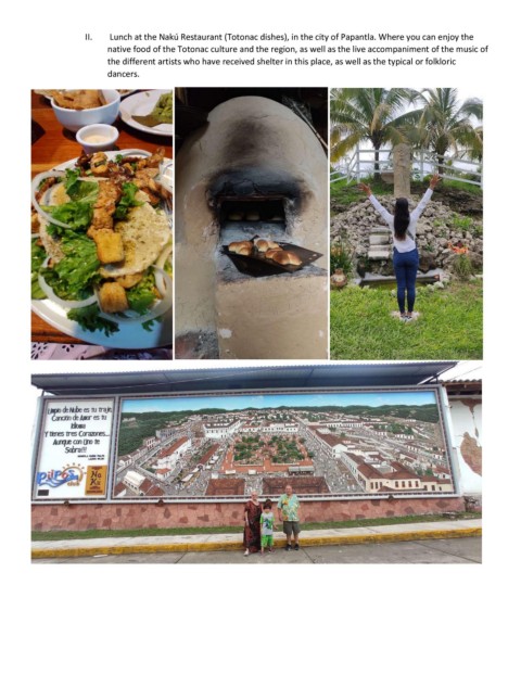 II. Lunch at the Nakú Restaurant (Totonac dishes), in the city of Papantla. Where you can enjoy the